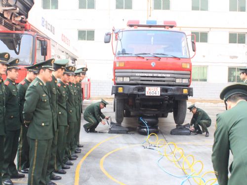 我公司技術人員在蘭州市消防特勤大隊為消防官兵現場顯示、培訓我公司所供氣墊。
