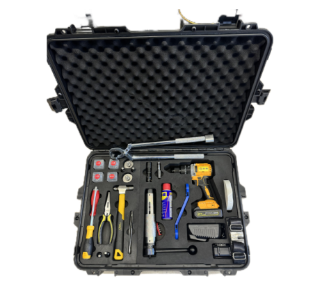 產品由專用特種鉆頭螺絲、鎖芯拔除器、鎖芯切斷器、換向扳手、專用電鉆、電池、充電器、鎖舌轉動器、除銹潤滑劑、定位器、輔助工具、LED感應照明燈及專用密碼工具箱等組成。