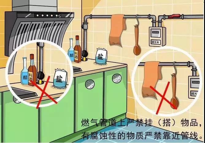 燃氣設備應設置在具有耐火、防火性能的廚房內,廚房不得堆放易燃易爆物品,燃氣管道上嚴禁掛物品,不得有第二種火源,要保證用氣環境的通風換氣。